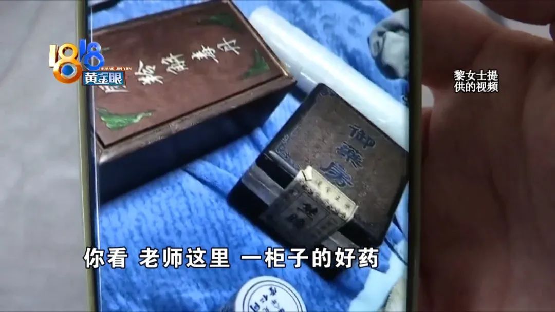 黎女士:“蛊惑我,让我拜,让我弄,说我身上有邪气,有什么东西的,我就吓到了,第二个疗程又继续消费。(这是封建迷信。)就是说嘛,因为当时我就给她搞懵了,不停的,因为不让我跟外界接触,手机也不能用,一用就说产生什么酸毒。(总共这次花了多少钱?)总共前前后后花了将近八万块钱,还打着‘同仁堂'的牌子,高价卖了一盒什么清肺丸给我,还有一盒犀牛角丸给我。”
